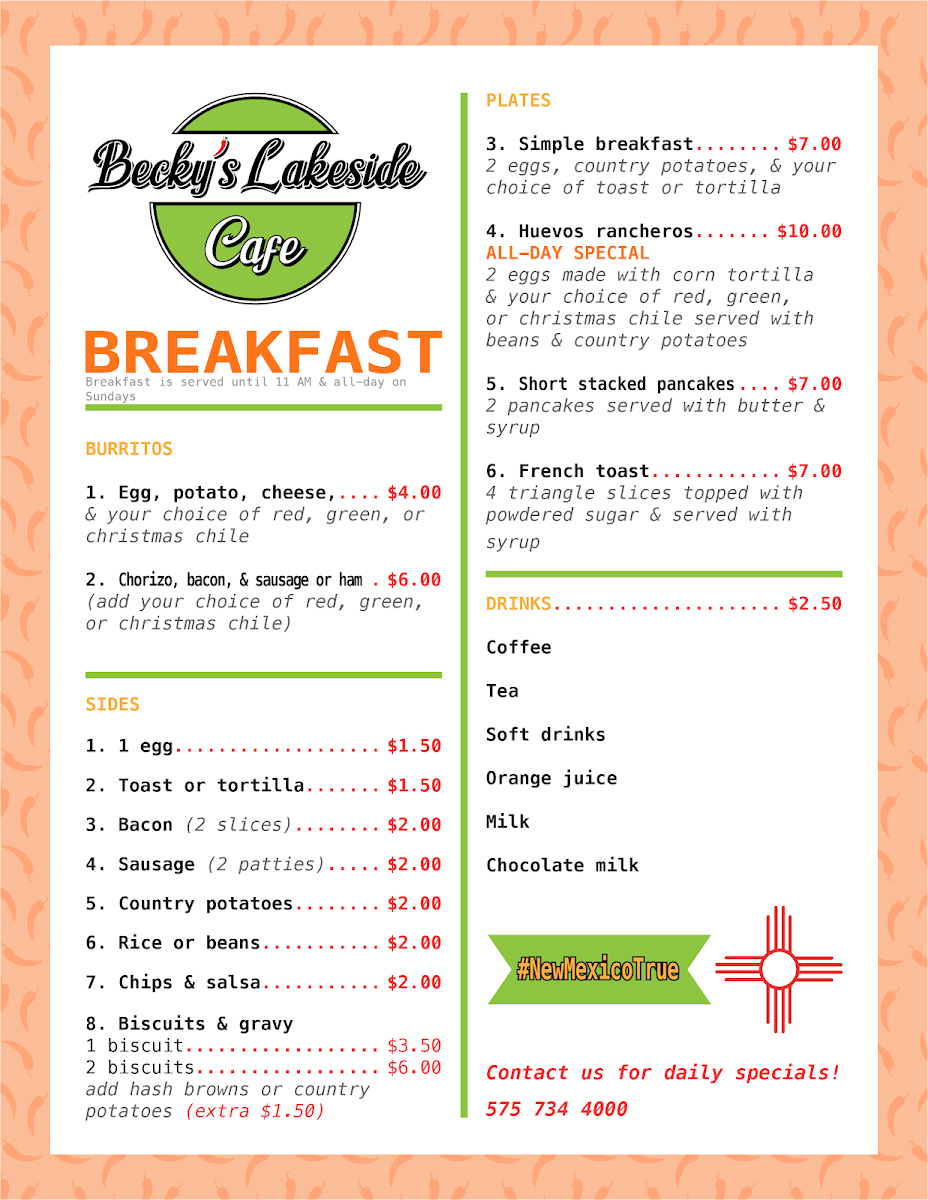 Becky's Lakeside Cafe Menu is the kind of lineup that makes you want to linger a little longer by the water at 5 Lake Van Dr in Dexter. The dishes feel comforting right from the start, with hearty breakfasts that come out warm and stacked just right. As you look further down the menu, the transition from morning plates to mid-day favorites happens naturally, offering everything from classic sandwiches to generous homestyle meals that taste like they were made in someone’s actual kitchen.